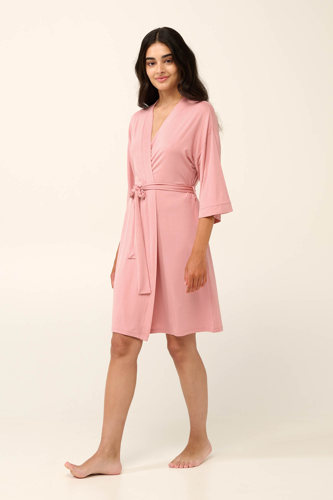 Τυλίξτε το σώμα σας σε μια πολυτελή μονόχρωμη καλοκαιρινή ρόμπα από απαλό micromodal, που χαρίζει εξαιρετικά απαλή αίσθηση στο σώμα και επιτρέπει στο δέρμα να αναπνέει. Είναι σχεδιασμένη με φαρδιά μανίκια, σε κλασικό σταυρωτό πατρόν για άνετη προσαρμοζόμενη εφαρμογή. Φορέστε τη κάθε στιγμή της ημέρας ανοιχτή για πιο ανάλαφρη εμφάνιση ή κλειστή με τη ζώνη της πάνω από το αγαπημένο σας νυχτικό.