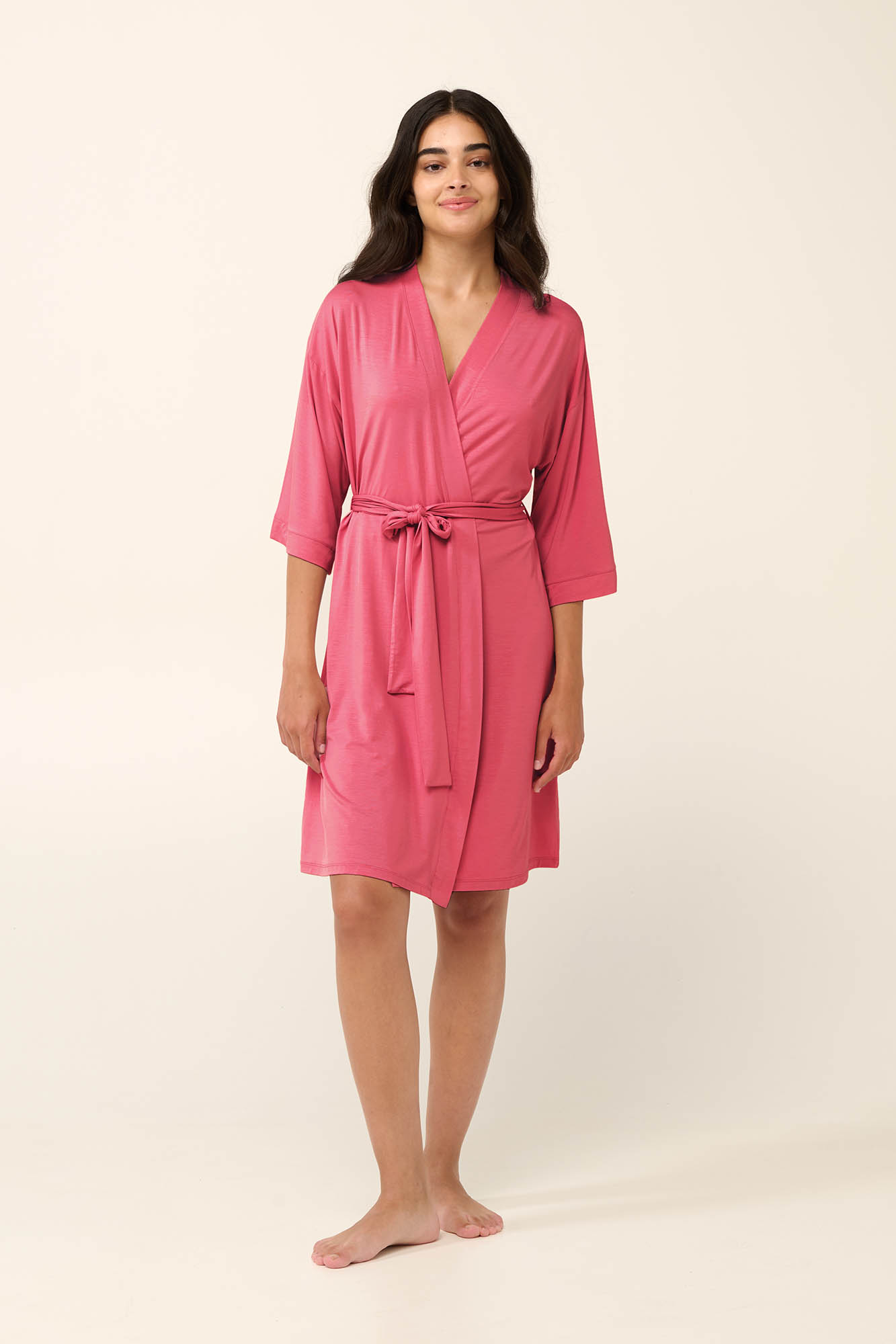 Τυλίξτε το σώμα σας σε μια πολυτελή μονόχρωμη καλοκαιρινή ρόμπα από απαλό micromodal, που χαρίζει εξαιρετικά απαλή αίσθηση στο σώμα και επιτρέπει στο δέρμα να αναπνέει. Είναι σχεδιασμένη με φαρδιά μανίκια, σε κλασικό σταυρωτό πατρόν για άνετη προσαρμοζόμενη εφαρμογή. Φορέστε τη κάθε στιγμή της ημέρας ανοιχτή για πιο ανάλαφρη εμφάνιση ή κλειστή με τη ζώνη της πάνω από το αγαπημένο σας νυχτικό.