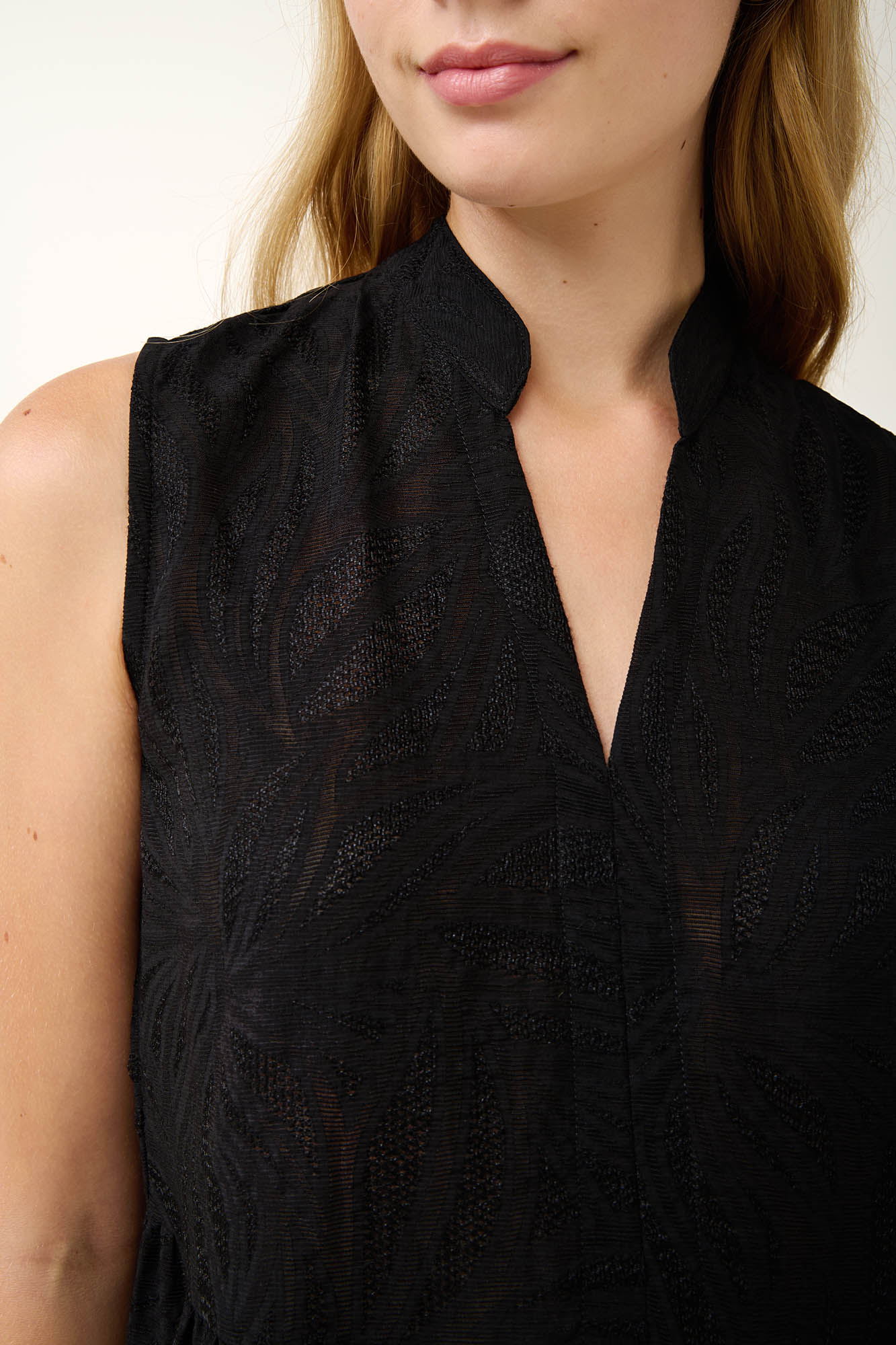 Απολαύστε την άνεση που σας προσφέρει αυτό το διάτρητο καλοκαιρινό φόρεμα από ελαφριά jacquard viscose, που χαρίζει απαλότητα και δροσερή αίσθηση. Σχεδιασμένο με κομψή V λαιμόκοψη, χωρίς μανίκια, προσθέτει μια θηλυκή νότα στην εμφάνιση σας. Ιδανικό για να φορεθεί πάνω από το μαγιό ή μετά την παραλία, είναι μια εύκολη επιλογή για αποδράσεις δίπλα στη θάλασσα.