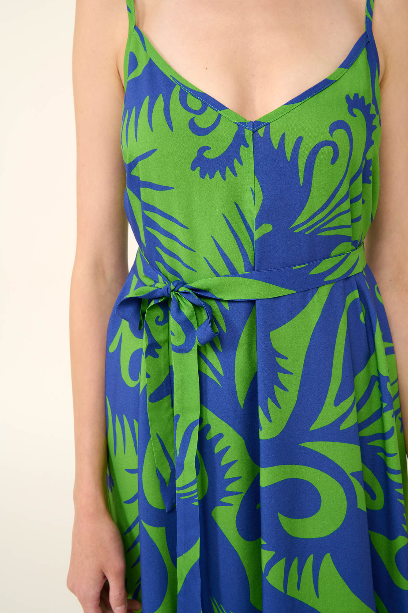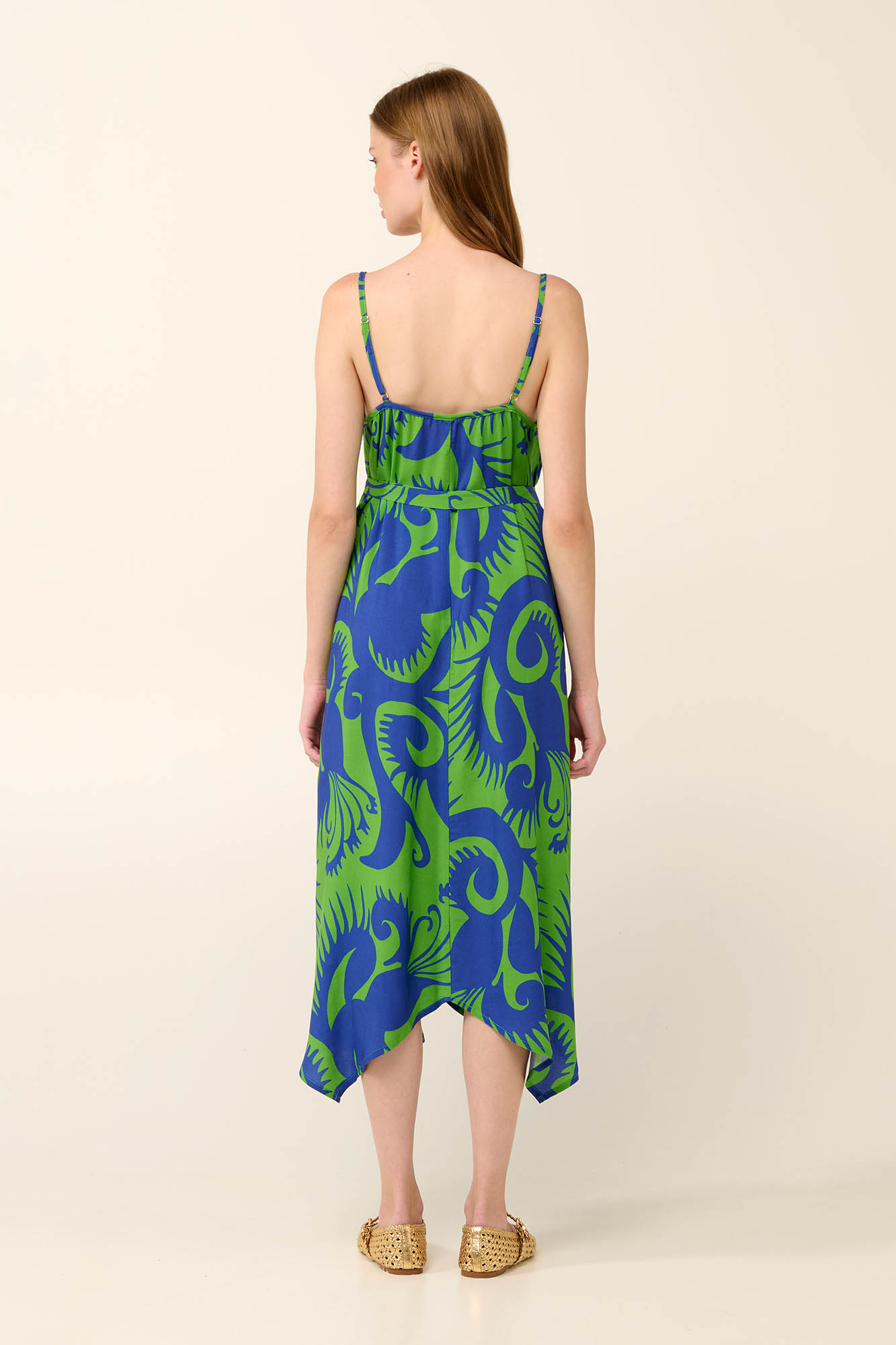 Αποκτήστε ένα αέρινο και κομψό καλοκαιρινό φόρεμα, φτιαγμένο από ελαφριά viscose ποπλίνα, που προσφέρει δροσερή αίσθηση. Το εντυπωσιακό αφηρημένο μοτίβο θαλάσσιας ζωής χαρίζει δροσερή αίσθηση, ενώ οι λεπτές τιράντες, η ζώνη στη μέση και το ασύμμετρο τελείωμα χαρίζουν άνεση και κίνηση σε κάθε βήμα. Μια ιδανική επιλογή για καλοκαιρινές αποδράσεις και βόλτες στην πόλη.