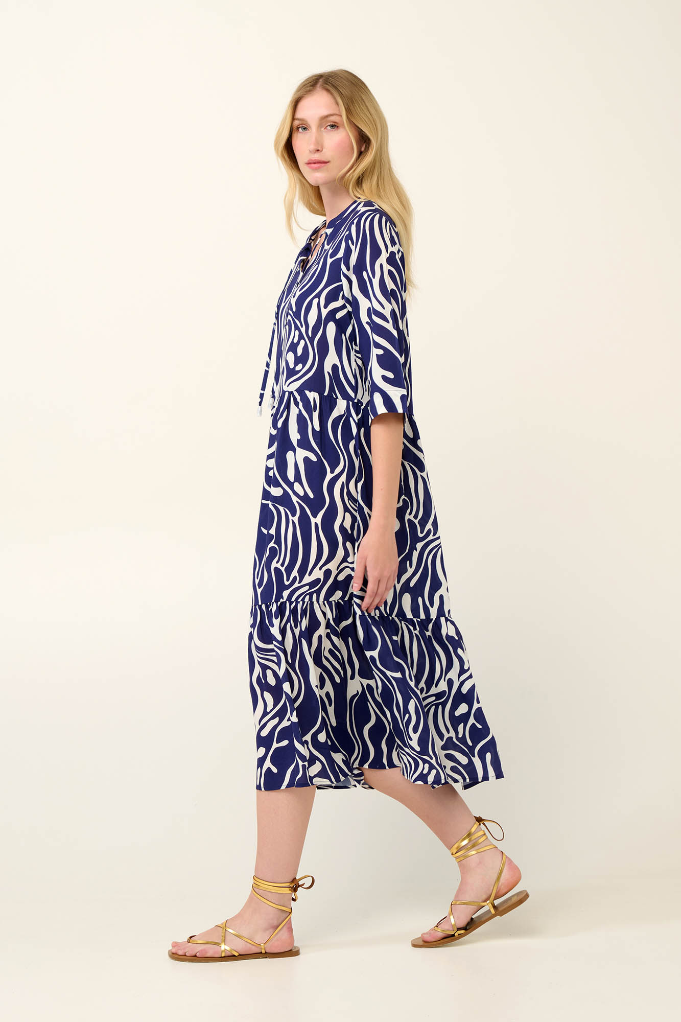 Ανανεώστε τη διάθεση σας με ένα αέρινο καλοκαιρινό φόρεμα, διακοσμημένο με εντυπωσιακό τύπωμα κοραλλιού εμπνευσμένο από το Αιγαίο. Φτιαγμένο από απαλή ποπλίνα, χαρίζει δροσερή και ανάλαφρη αίσθηση. Η V λαιμόκοψη με διακριτικά δεσίματα προσθέτει κομψότητα, ενώ η χαλαρή, χυτή γραμμή του προσφέρουν κίνηση σε κάθε βήμα. Ιδανικό για καλοκαιρινές βόλτες και χαλαρές, κομψές εμφανίσεις.
