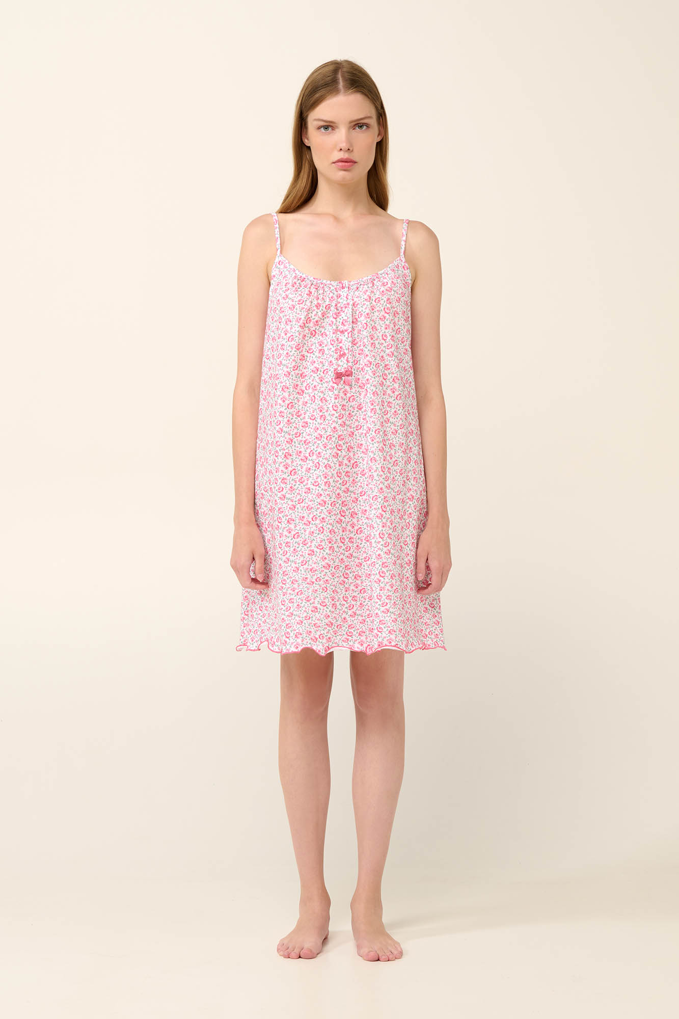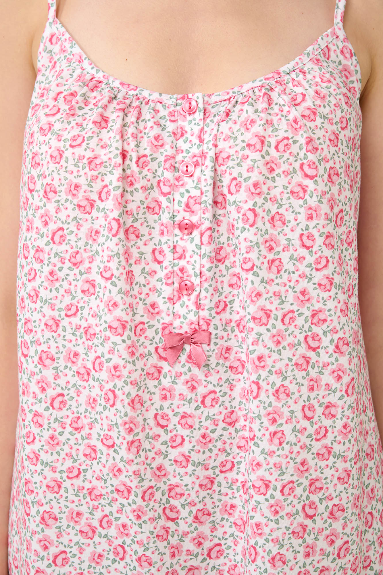 Αναδείξτε τη θηλυκότητα σας με ένα ελαφρύ καλοκαιρινό νυχτικό με ρυθμιζόμενες τιράντες σε ρομαντικό μοτίβο με ανθισμένα τριαντάφυλλα. Σχεδιασμένο σε χαλαρή γραμμή για βέλτιστη εφαρμογή, με πατιλέτα και σούρες στο στήθος που χαρίζουν δροσερή αίσθηση και άνεση. Ένα νυχτικό κατασκευασμένο από 100% διαπνέον βαμβάκι που θα βοηθήσει να απολαύσετε τις στιγμές χαλάρωσης σας.