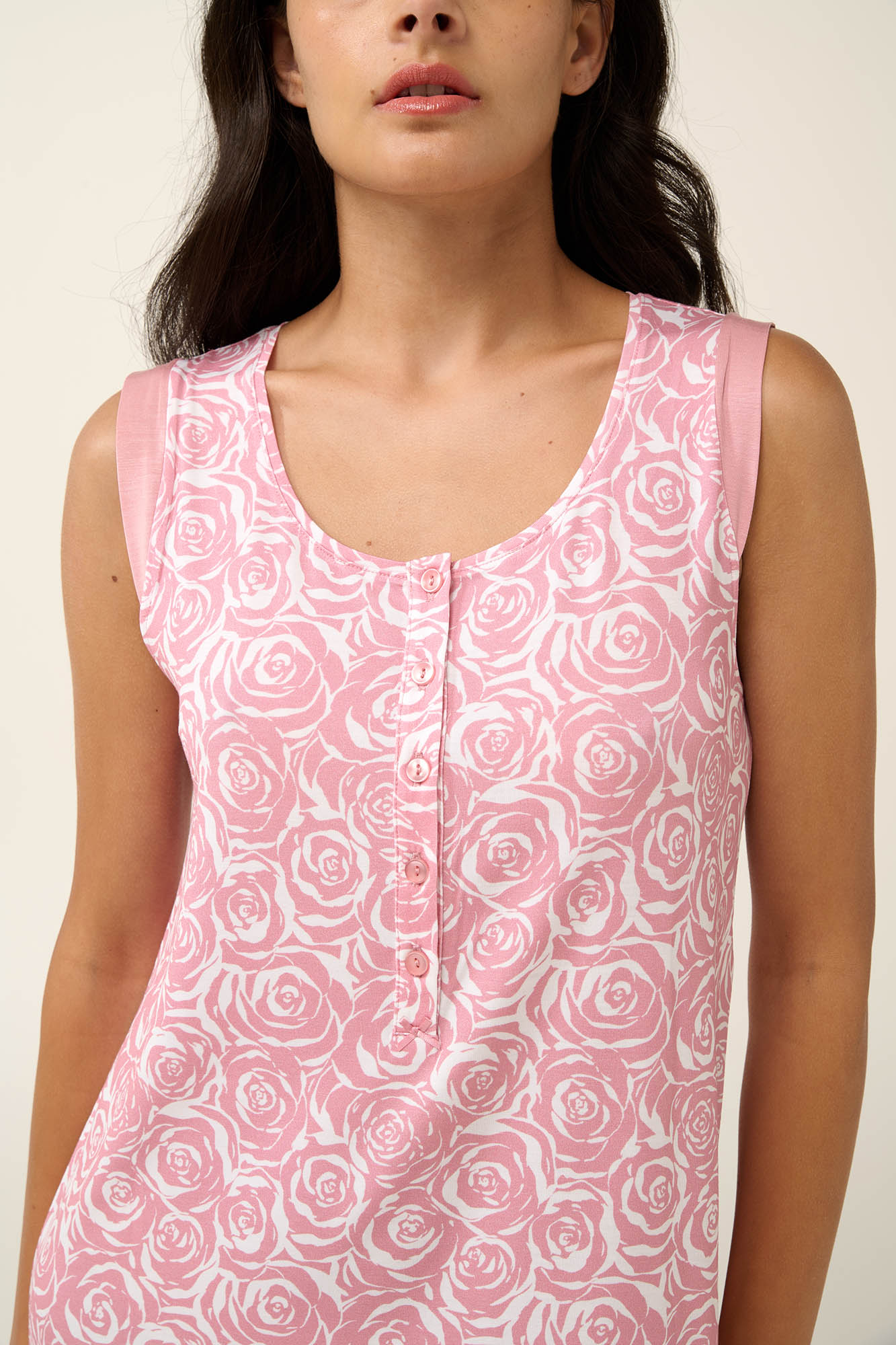 Αφεθείτε στην άνεση που μπορεί να σας χαρίσει ένα αμάνικο καλοκαιρινό νυχτικό σε φλοράλ μοτίβο με τριαντάφυλλα. Είναι κατασκευασμένο από εξαιρετικά απαλό στο δέρμα micromodal που αγκαλιάζει ευχάριστα το σώμα και σχεδιασμένο με πρακτική πατιλέτα σε άνετη γραμμή. Μια όμορφη επιλογή σε ροζ παστέλ απόχρωση που μπορεί να εξυπηρετήσει νέες μητέρες κατά την περίοδο του θηλασμού.