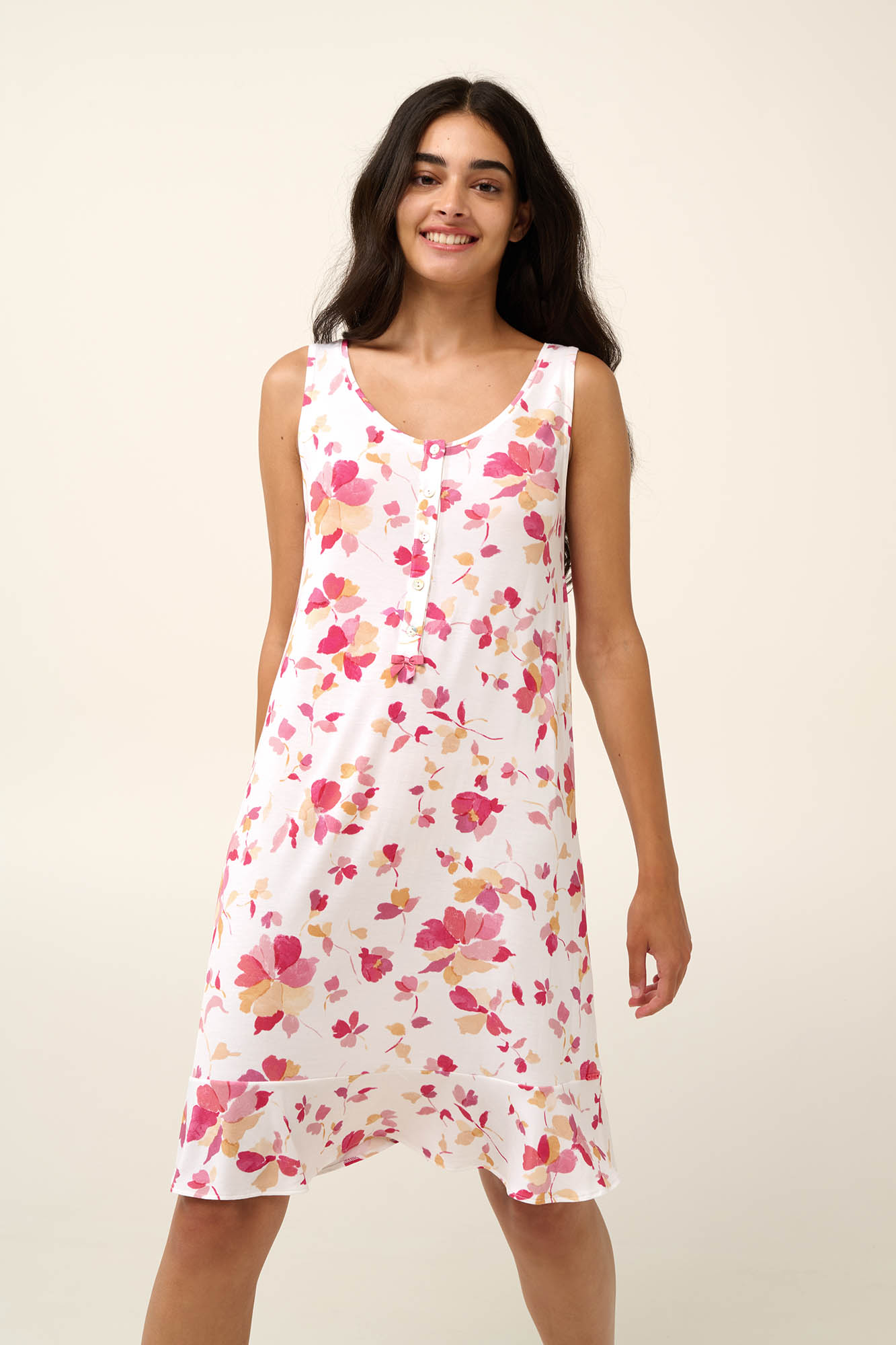 Απολαύστε την ανάλαφρη και αέρινη αίσθηση που μπορεί να σας προσφέρει ένα αμάνικο καλοκαιρινό νυχτικό με παστέλ φλοράλ μοτίβο σε λευκό καμβά. Σχεδιασμένο με πατιλέτα σε χαλαρή γραμμή για άνετη εφαρμογή που κολακεύει κάθε σιλουέτα. Κατασκευασμένο από διαπνέον micromodal είναι απαλό σα μετάξι στο σώμα και θα σας βοηθήσει να απολαύσετε τις στιγμές χαλάρωσης σας και το βραδινό σας ύπνο. Προσθέστε στη καθημερινότητα σας άνεση και ρομαντισμό.