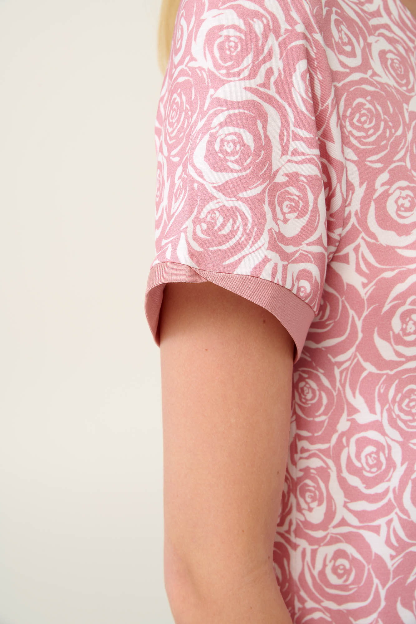 Ανακαλύψτε την άνεση που μπορεί να σας χαρίσει ένα καλοκαιρινό νυχτικό σε κομψό μοτίβο με ροδοπέταλα και ροζ παστέλ απόχρωση. Σχεδιασμένο σε χαλαρή γραμμή, με στρογγυλή λαιμόκοψη, κοντό μανίκι και πατιλέτα στο στήθος για μεγαλύτερη άνεση και ελευθερία κινήσεων. Είναι κατασκευασμένο από απαλό micromodal που επιτρέπει στο δέρμα να αναπνέει και θα σας κρατήσει δροσερές και άνετες τα ζεστά απογεύματα του καλοκαιριού.
