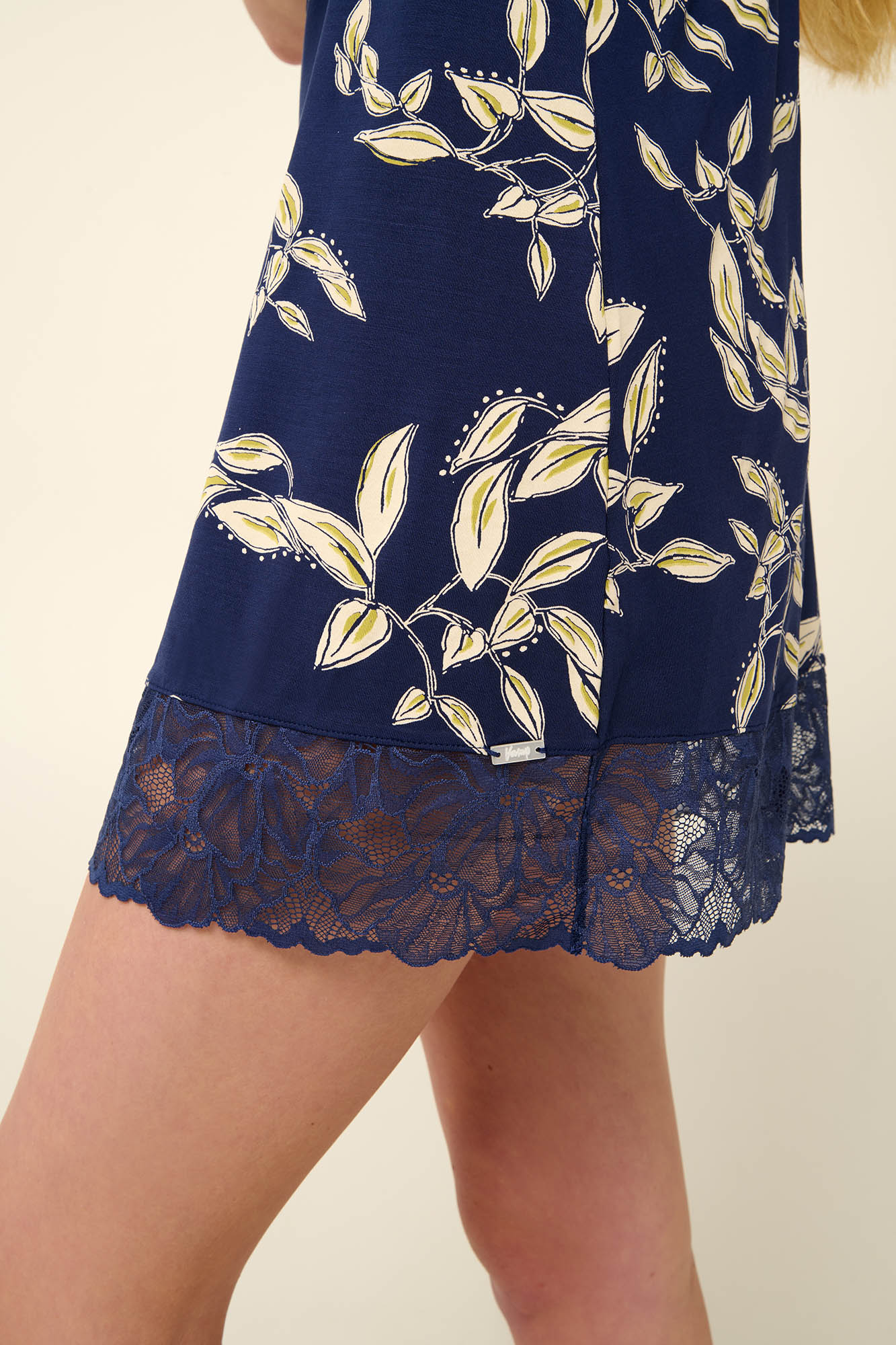Αφεθείτε στην κομψότητα που σας προσφέρει αυτό το γοητευτικό καλοκαιρινό νυχτικό σε μοτίβο με φύλλα του ωκεανού. Σχεδιασμένο με ανοιχτή πλάτη, διακοσμημένη με δαντέλα που κουμπώνει ψηλά στο λαιμό και δαντέλα στο κάτω μέρος είναι μια εξαιρετικά ρομαντική επιλογή που θα αναδείξει τη θηλυκότητα σας. Κατασκευασμένο από απαλό micromodal που αγκαλιάζει ευχάριστα το σώμα θα σας βοηθήσει να απολαύσετε μοναδικές στιγμές χαλάρωσης.