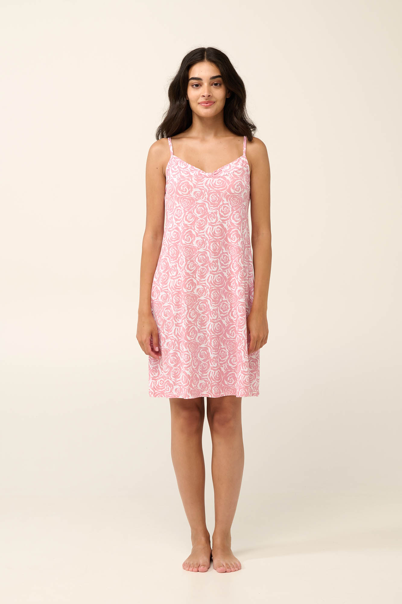 Προσθέστε στη συλλογή σας ένα καλοκαιρινό νυχτικό με τιράντες, σε κομψό μοτίβο με ροδοπέταλα και ροζ παστέλ απόχρωση. Είναι σχεδιασμένο με λαιμόκοψη V, σε χαλαρή γραμμή με τιράντες που αυξομειώνονται για βέλτιστη εφαρμογή και άνεση. Το νυχτικό είναι κατασκευασμένο από ύφασμα micromodal που χαρίζει εξαιρετικά απαλή αίσθηση στο σώμα και επιτρέπει στο δέρμα να αναπνέει. Ένα ελαφρύ νυχτικό που θα απολαύσετε κάθε στιγμή στο σπίτι.