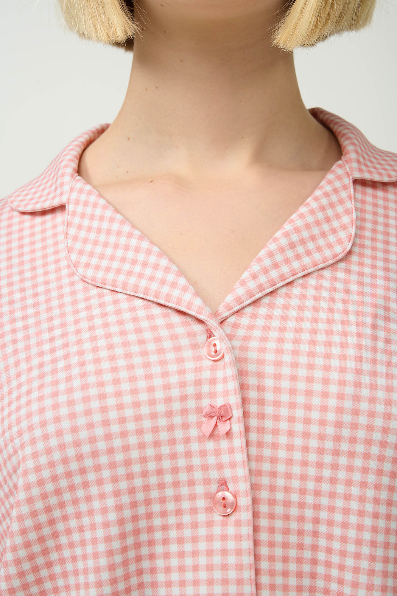Προσθέστε μια νότα γοητείας στα βράδια του χειμώνα με αυτό το σετ γυναικείες πυτζάμες σε ροζ καρό μοτίβο, κατασκευασμένο από 100% βαμβάκι interlock. Σχεδιασμένο με κλασικό κουμπωτό πάνω μέρος και μακριά μανίκια, που προσφέρει άνεση και διαχρονικό στυλ στην εμφάνιση σας. Απαλό, διαπνέον και φιλικό προς το δέρμα, το ύφασμα εξασφαλίζει άνεση όλη τη νύχτα, είτε χαλαρώνετε στο σπίτι είτε ετοιμάζεστε για ύπνο.