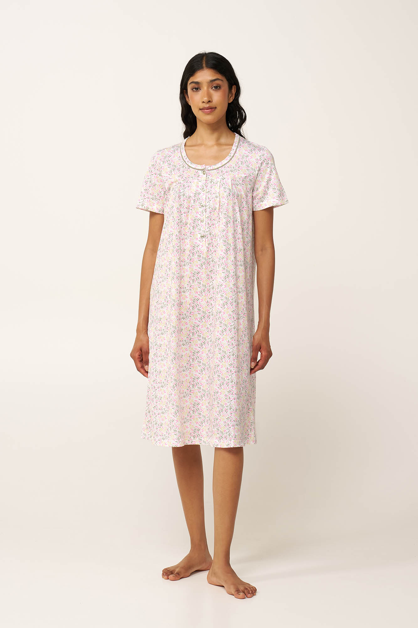 Αυτό το καλοκαιρινό νυχτικό είναι κατασκευασμένο από διαπνέον 100% βαμβακερό single jersey, προσφέροντας ελαφριά και άνετη αίσθηση στο σώμα. Η πατιλέτα επιτρέπει εύκολη πρόσβαση στο στήθος για θηλασμό, ενώ οι διακριτικές πιέτες στο μπροστινό μέρος δημιουργούν επιπλέον χώρο για φυσικά χαλαρή εφαρμογή. Σχεδιασμένο με ένα διακριτικό φλοράλ μοτίβο προσθέτει που χαρίζει φρεσκάδα και διαχρονικό χαρακτήρα. Ιδανικό για να απολαύσετε τις στιγμές χαλάρωσης σας μετά από μια μεγάλη ημέρα.
