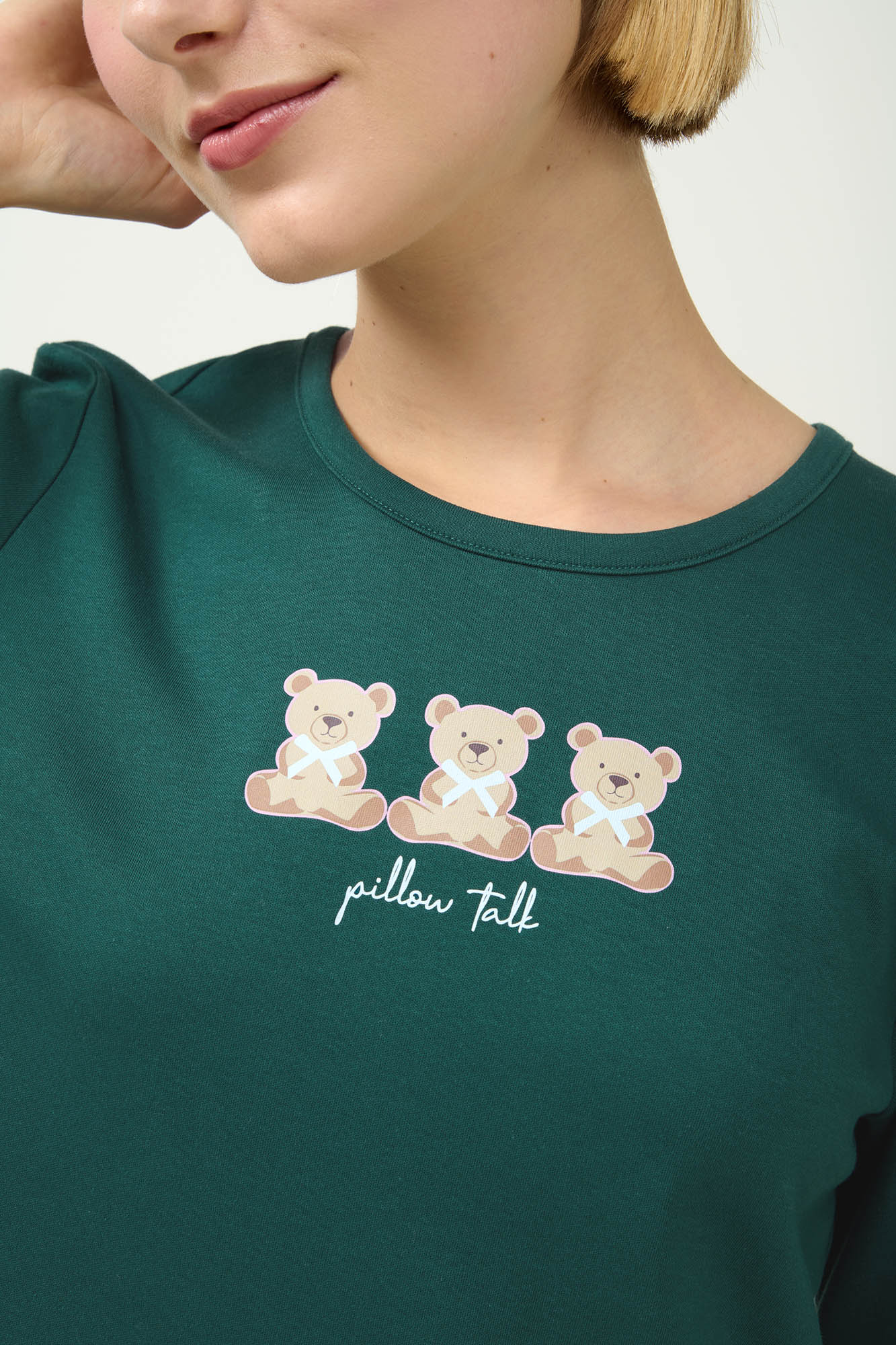 Επιλέξτε ένα νυχτικό, κατασκευασμένο από 100% απαλό και διαπνέον βαμβάκι interlock, ιδανικό για τις νύχτες του χειμώνα. Ένα χαριτωμένο τύπωμα με τρία αξιαγάπητα αρκουδάκια στο στήθος και οι πλαϊνές τσέπες με καρό μοτίβο προσθέτουν μια παιχνιδιάρικη και πρακτική πινελιά στη κλασική γραμμή του. Μια ζεστή και γεμάτη λεπτομέρειες προσθήκη στη γκαρνταρόμπα σας.