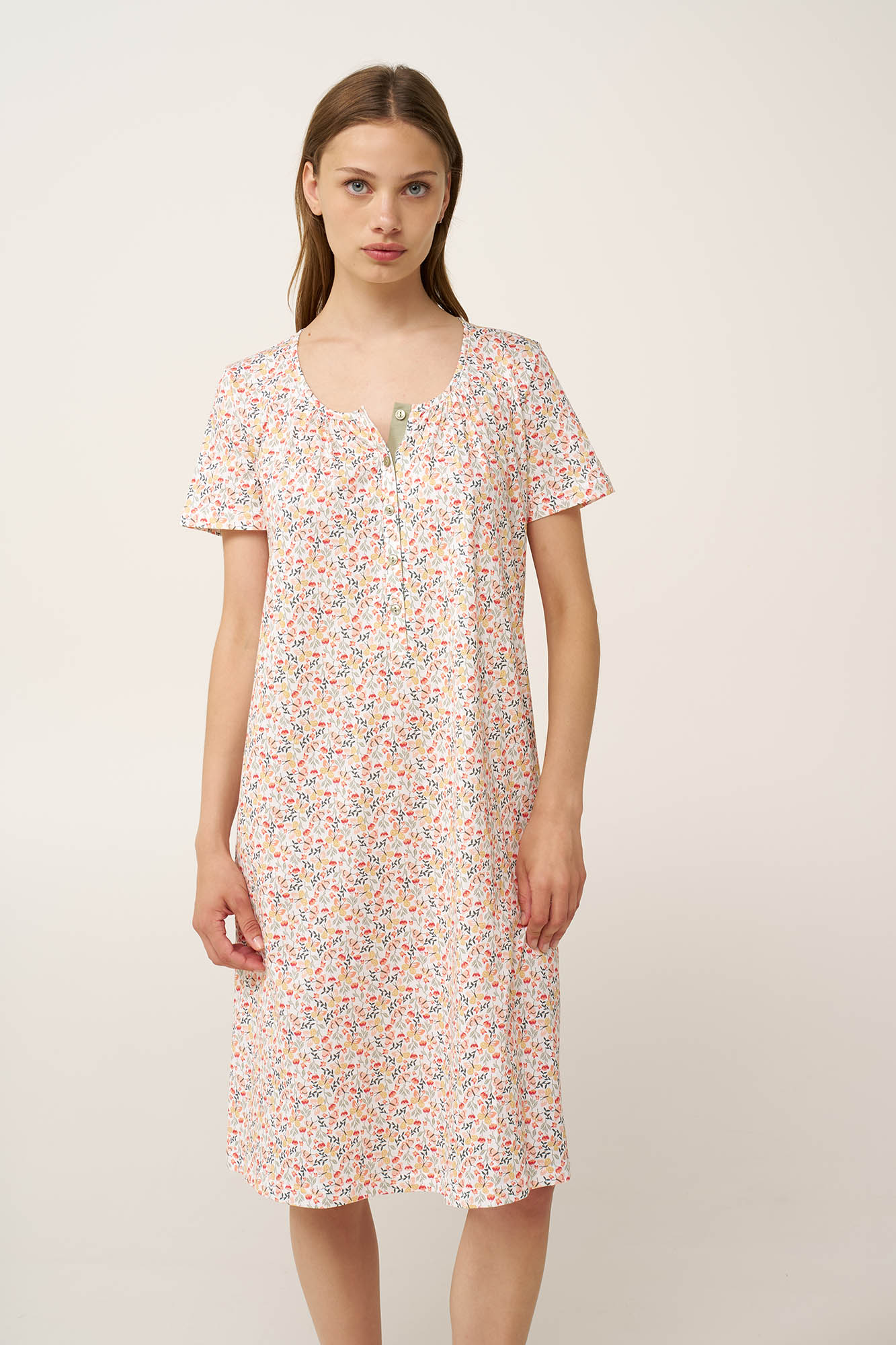 Η άνεση έρχεται φυσικά με αυτό το καλοκαιρινό νυχτικό, κατασκευασμένο από απαλό και διαπνέον 100% βαμβάκι single jersey. Σχεδιασμένο με πρακτική πατιλέτα και κοντά μανίκια, σε χαλαρή γραμμή και ένα δροσερό print με πεταλούδες και αγριολούλουδα χαρίζει φρεσκάδα και μέγιστη άνεση. Μια ιδανική επιλογή για να απολαύσετε ένα όμορφο απόγευμα ή το βραδινό σας ύπνο με άνεση.