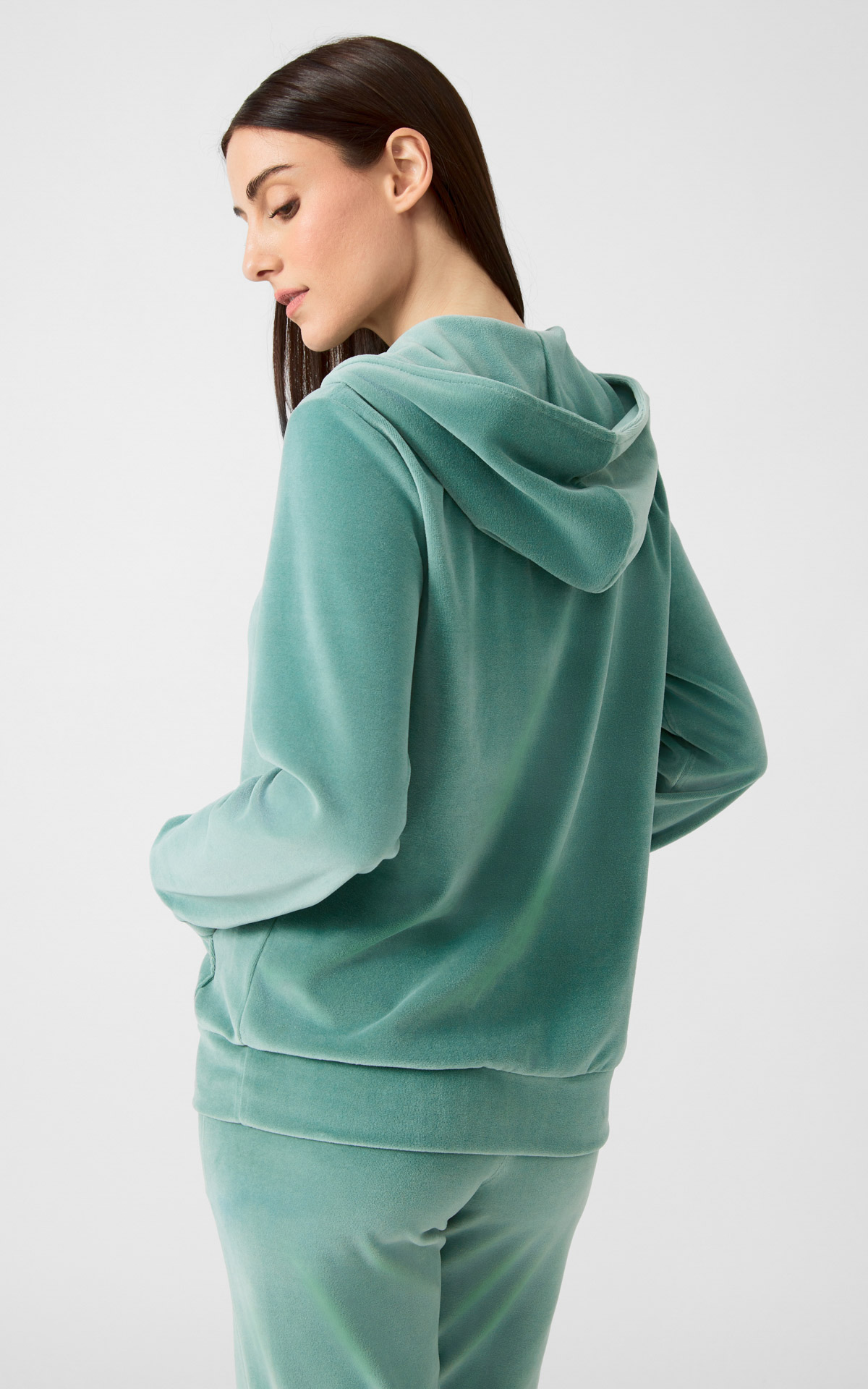 Μπουφάν χειμερινό βελούδινο με κουκούλα, από 80% βαμβάκι και 20% polyester.Διαθέτει φερμουάρ, καγκουρό τσέπες και μπάσκες στα τελειώματα μανικιού. Συνδυάστε το, με τα βελούδινα παντελόνια της κολεξιόν MINERVA για μία ολοκληρωμένη εμφάνιση. (Green haze)