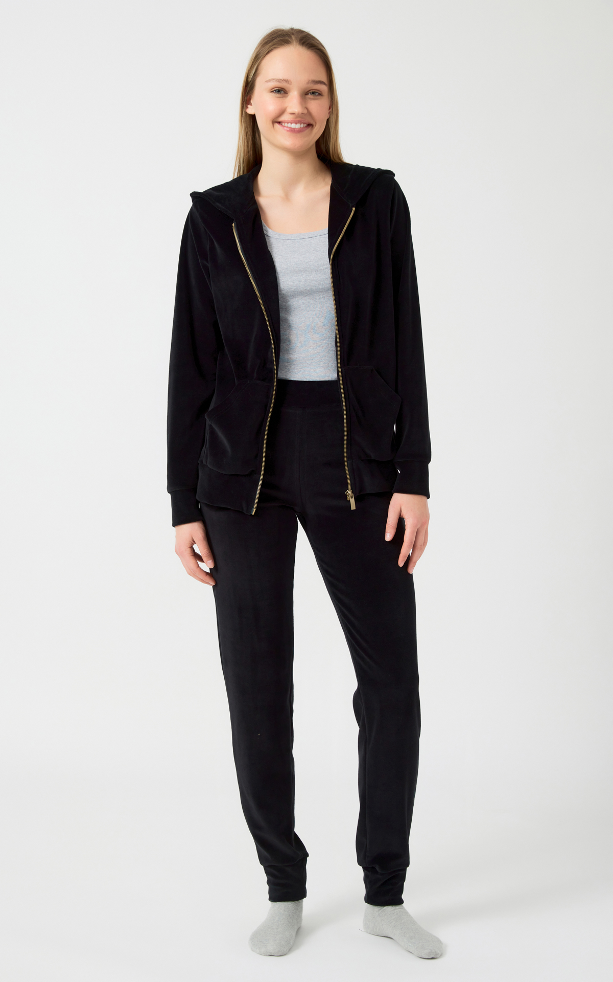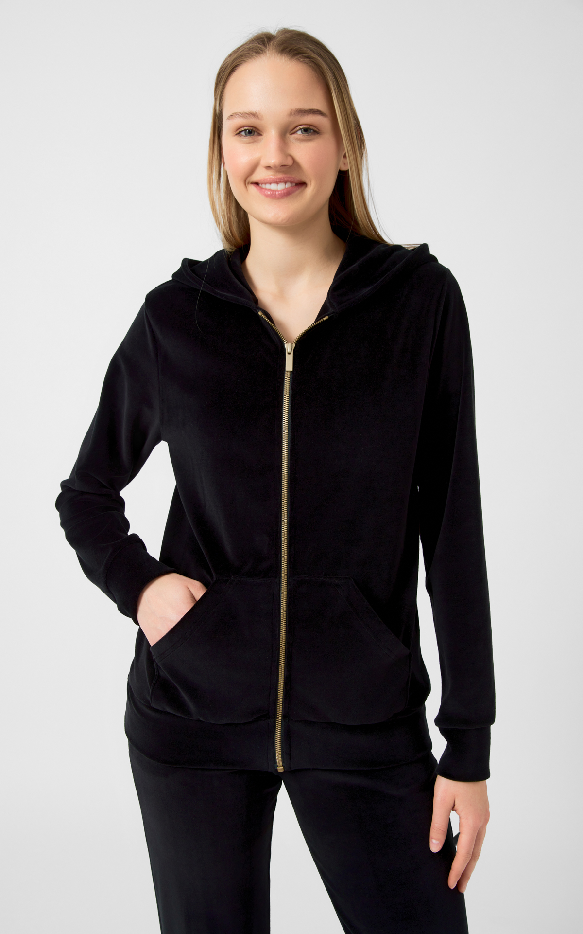 Μπουφάν χειμερινό βελούδινο με κουκούλα, από 80% βαμβάκι και 20% polyester.Διαθέτει φερμουάρ, καγκουρό τσέπες και μπάσκες στα τελειώματα μανικιού. Συνδυάστε το, με τα βελούδινα παντελόνια της κολεξιόν MINERVA για μία ολοκληρωμένη εμφάνιση. (Μαυρο)