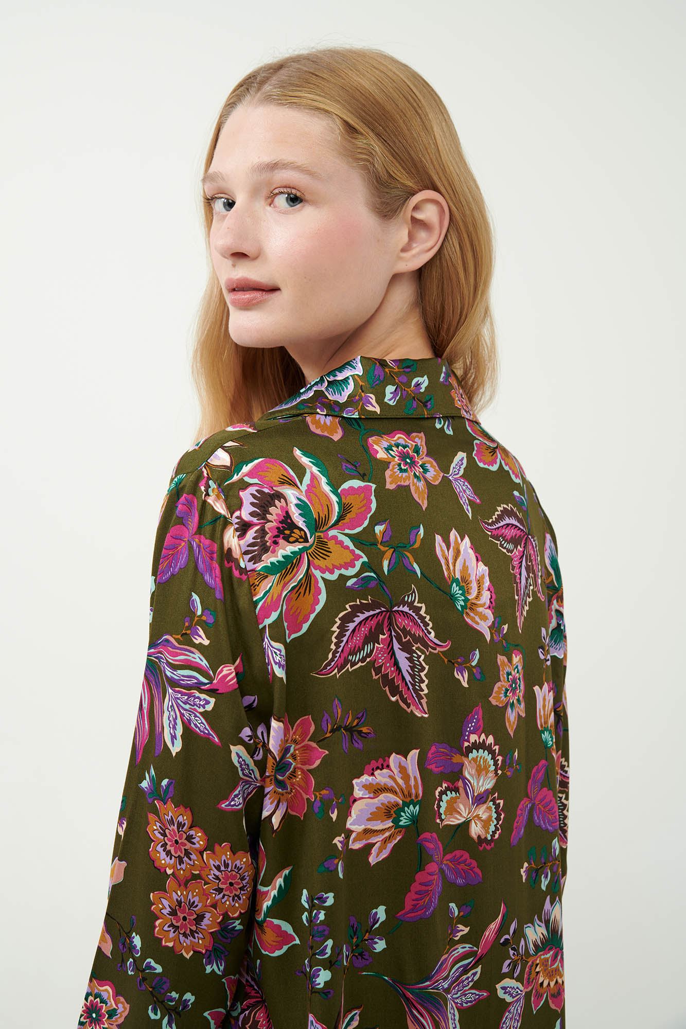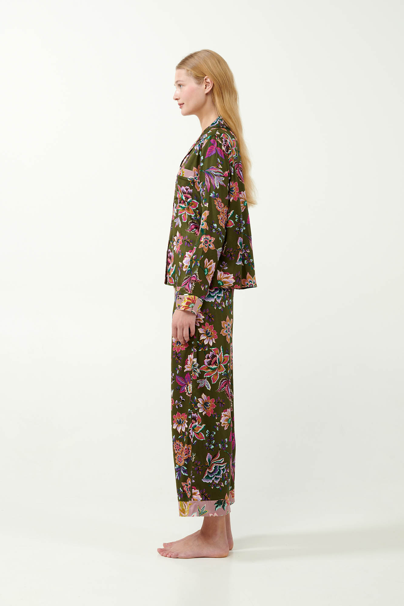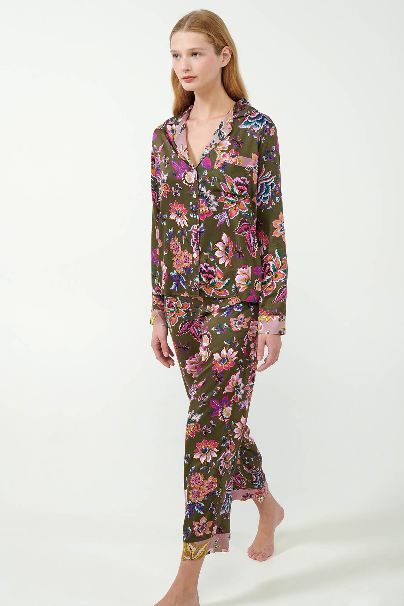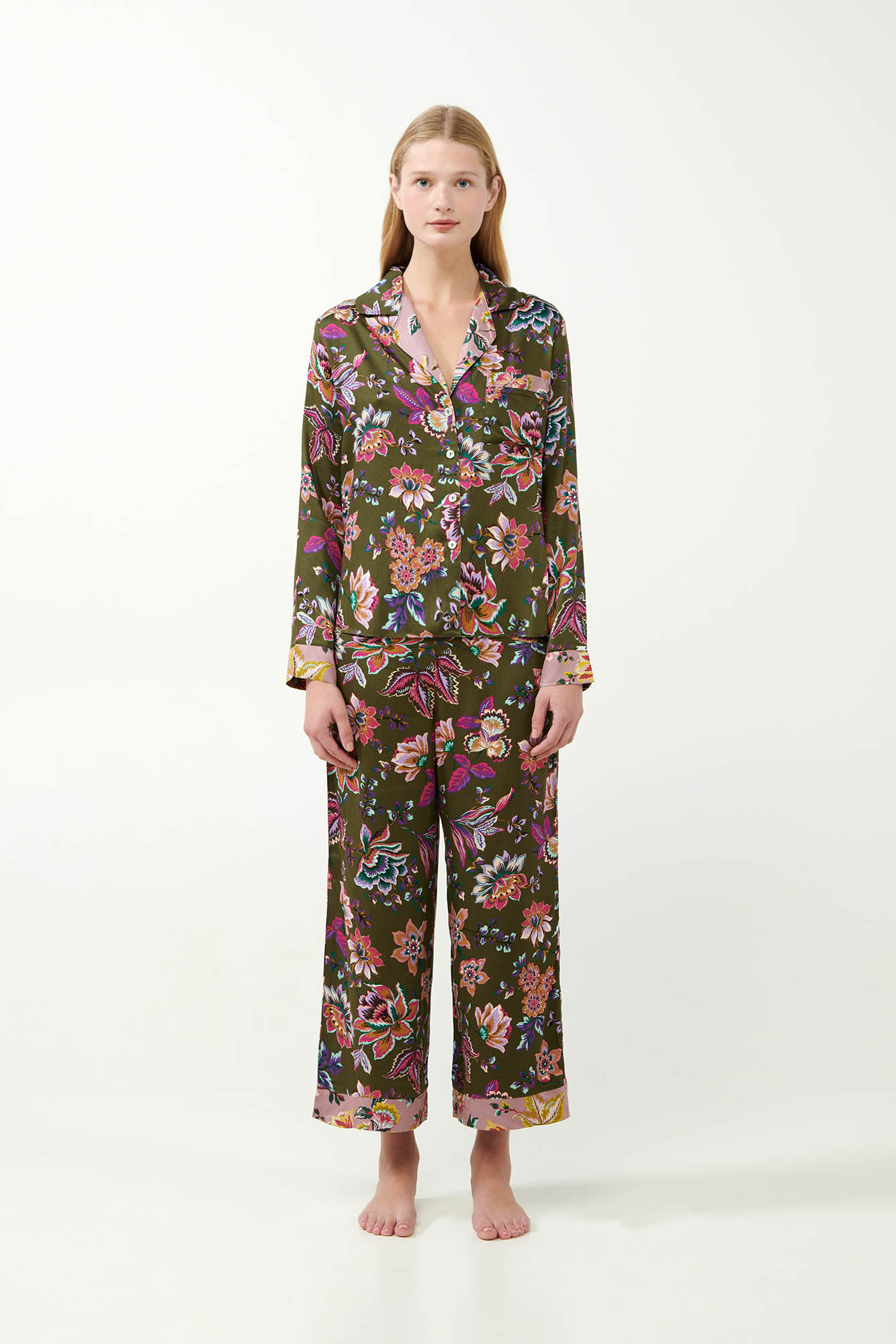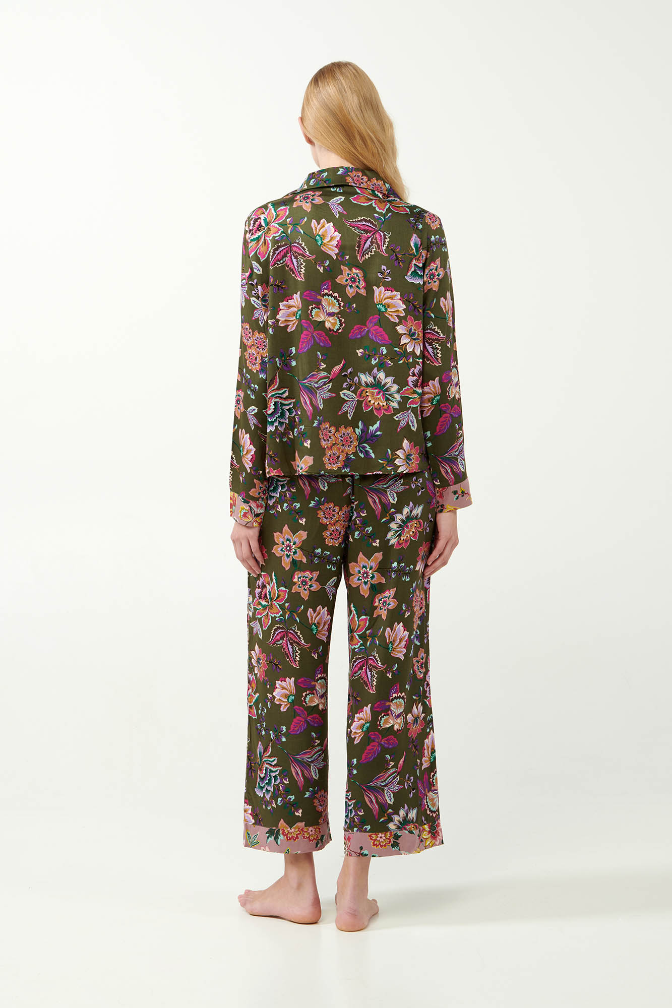 Viscose Satin Κουμπωτή Φλοράλ Πυτζάμα