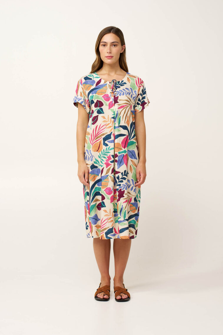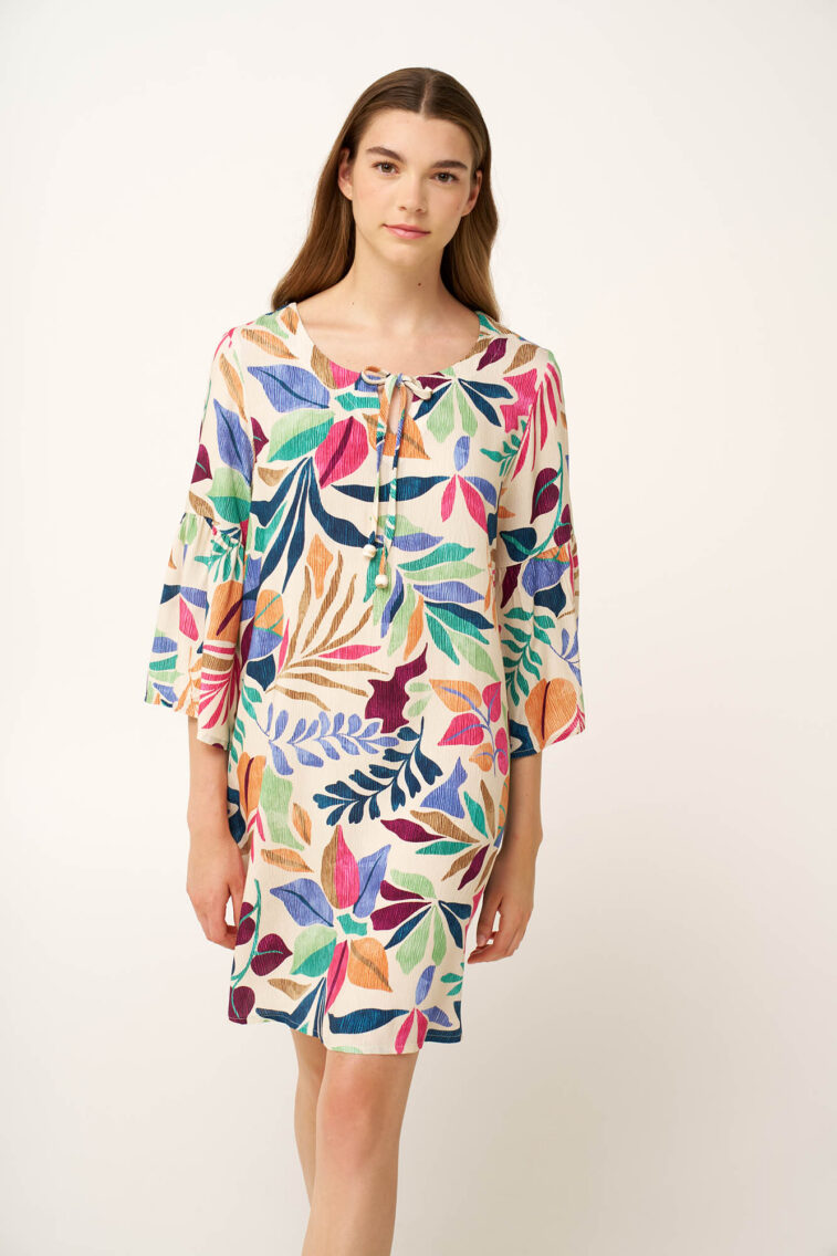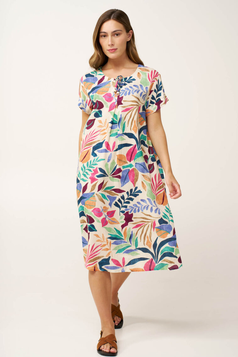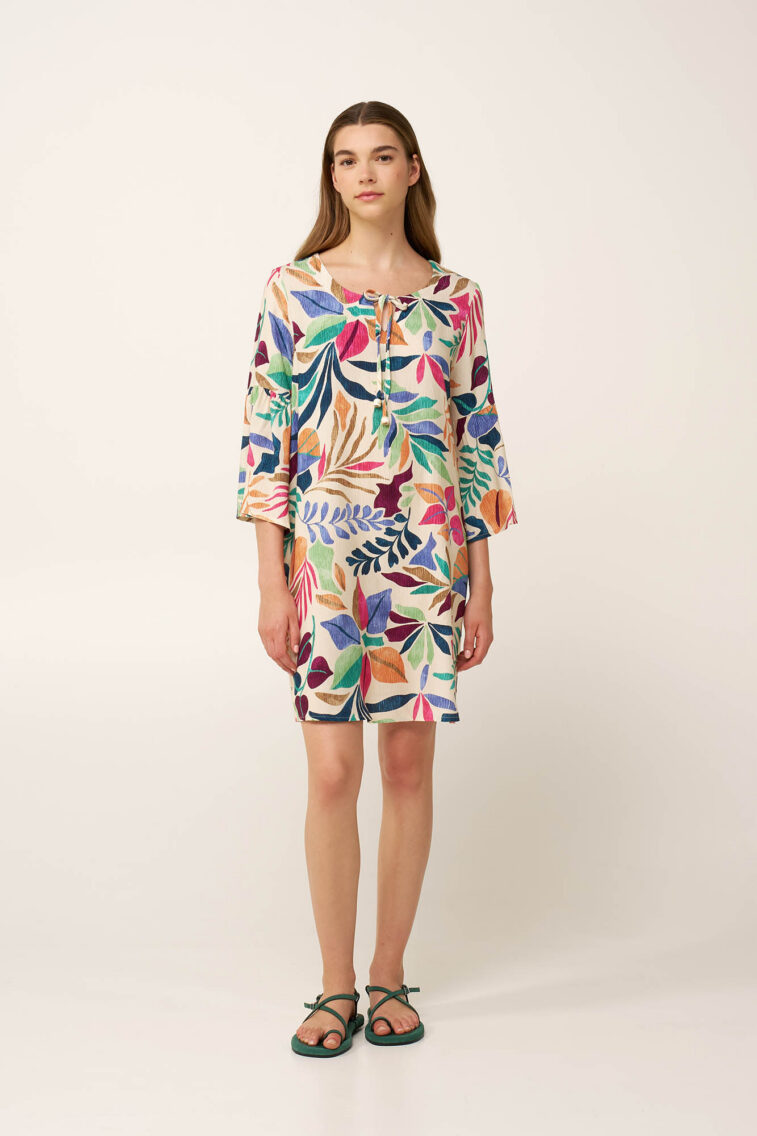 Καλοκαιρινό Φόρεμα Ποπλίνα με Τροπικό Μοτίβο