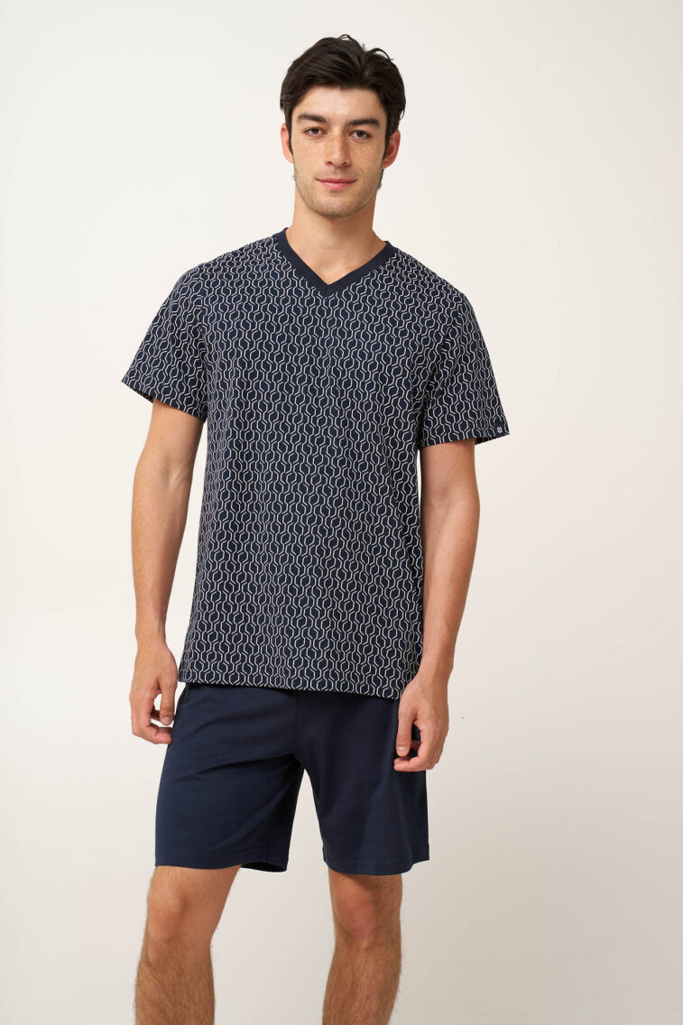 Βαμβακερή Ανδρική Πυτζάμα με Κοντό Μανίκι