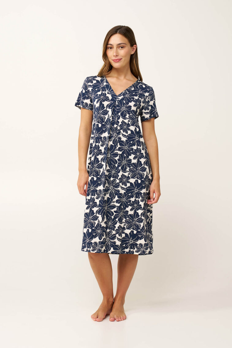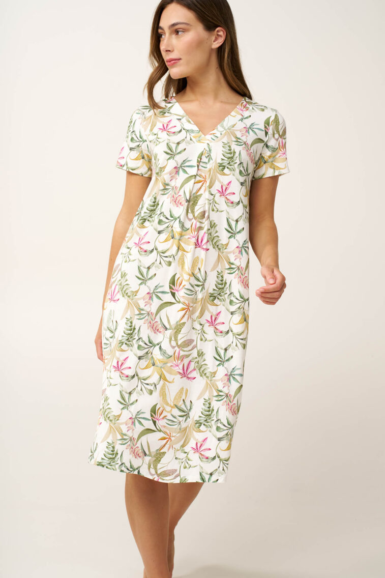 Φλοράλ Νυχτικό Cotton-Modal με Πιέτα